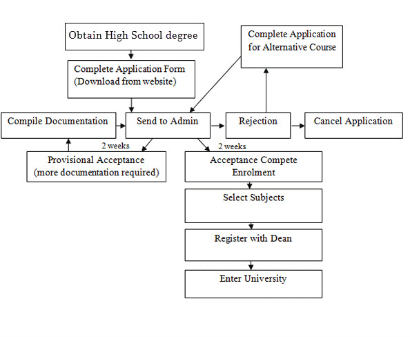 That being said, if the individuals application request is acceptance, their will be a provisional acceptance process, in which more documentation will be required. This will take two weeks. Complete enrollment will take an additional two weeks, after which the student is offically accepted into the college and can move on with selecting their subject, marking the start of their university education.